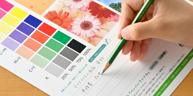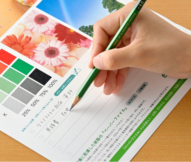 鉛筆や油性ペンでファイルに直接書き込めます。ちょっとしたメモや覚え書きをファイルに書いておくなど、自由に活用していただけます。
